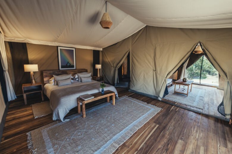 Perfect for families, these tents feature two separate bedrooms connected by a central lounge area. Each bedroom has its own private ensuite bathroom. The spacious layout ensures comfort and privacy for the whole family.